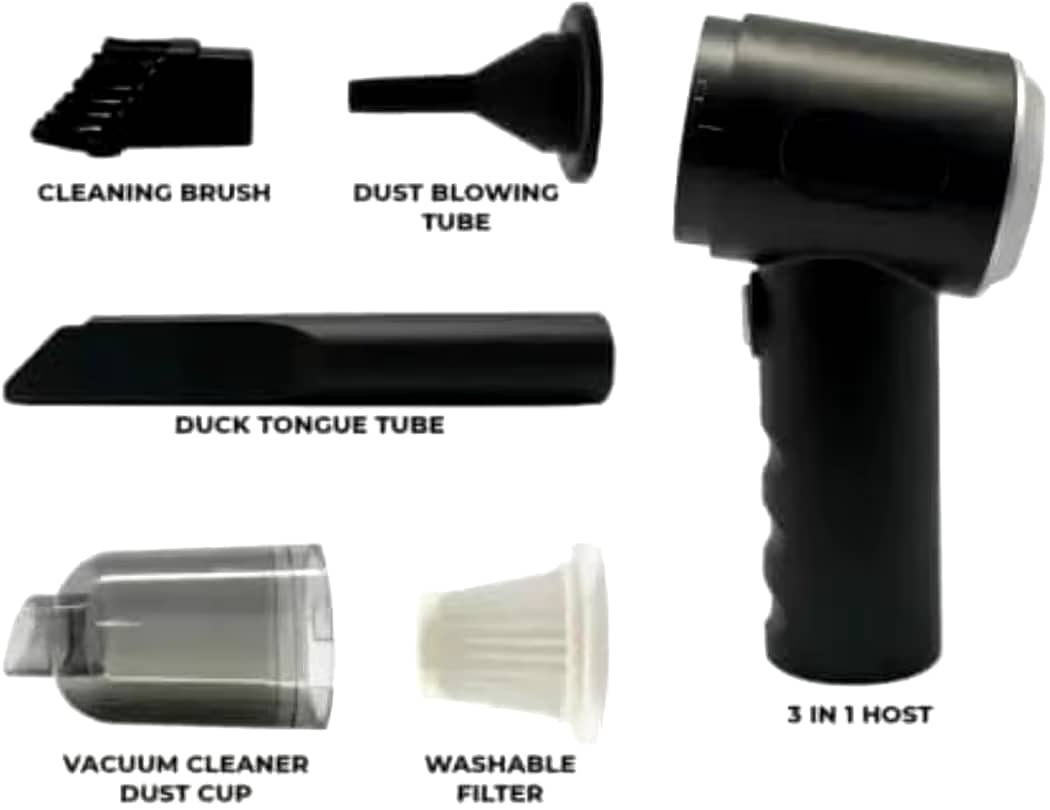 Experience the next level of car cleanliness with the 3-in-1 Portable Car Vacuum Cleaner. This device is engineered for maximum versatility, combining three essential functions into one compact, cordless unit, making it the perfect all-in-one solution for detailing your vehicle (and even your home!).