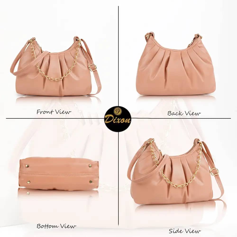 Step into chic style with this ultra-trendy, versatile handbag. Combining a soft, feminine color with edgy gold-tone hardware, this bag is a must-have for elevating any casual or semi-dressy outfit.